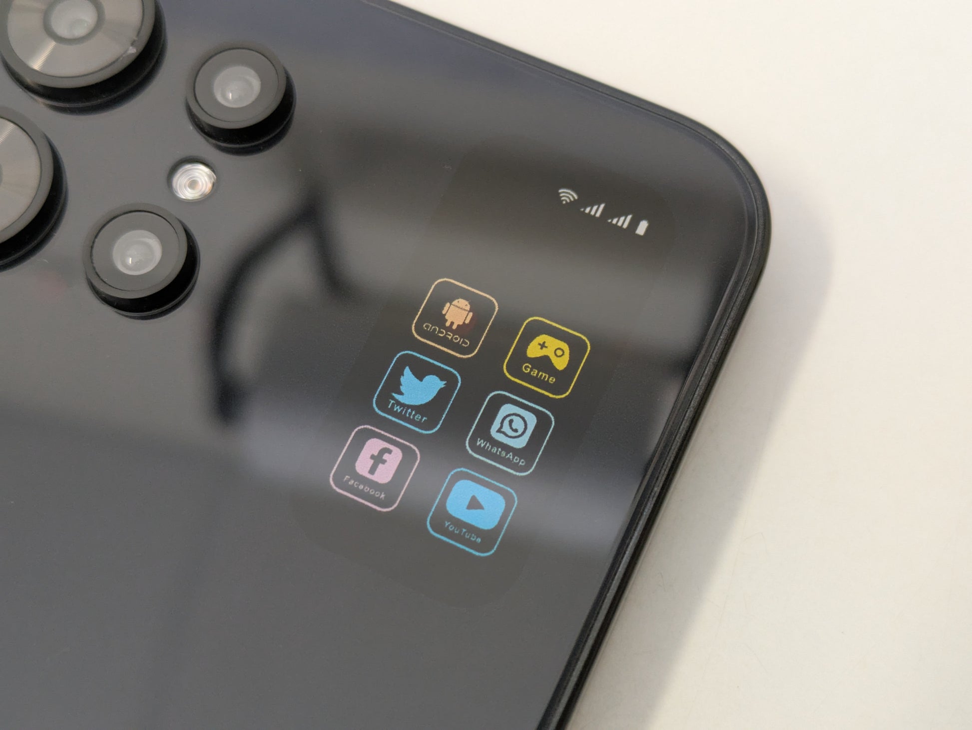 - Icons on rear of phone are printed on, NOT another screen.