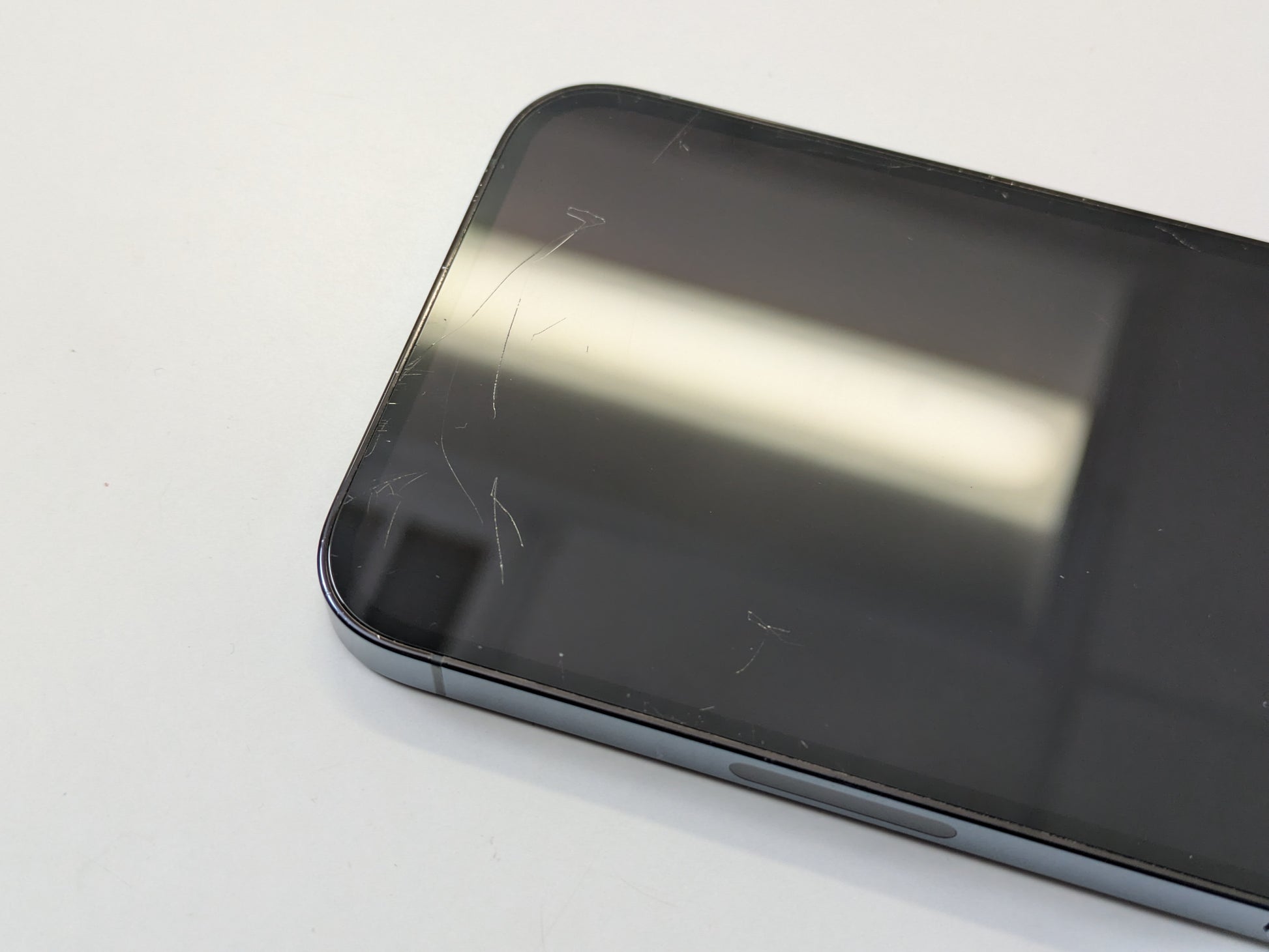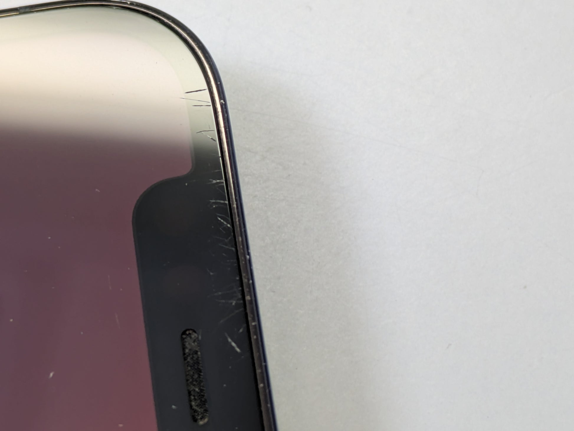 - Several large scratches toward bottom of screen. Small scratches toward top of screen. One small scratch in middle-left of screen. Microscratches on buttons and frame. Slight discoloration around charging port. Please take a look at the photos for further cosmetic details.