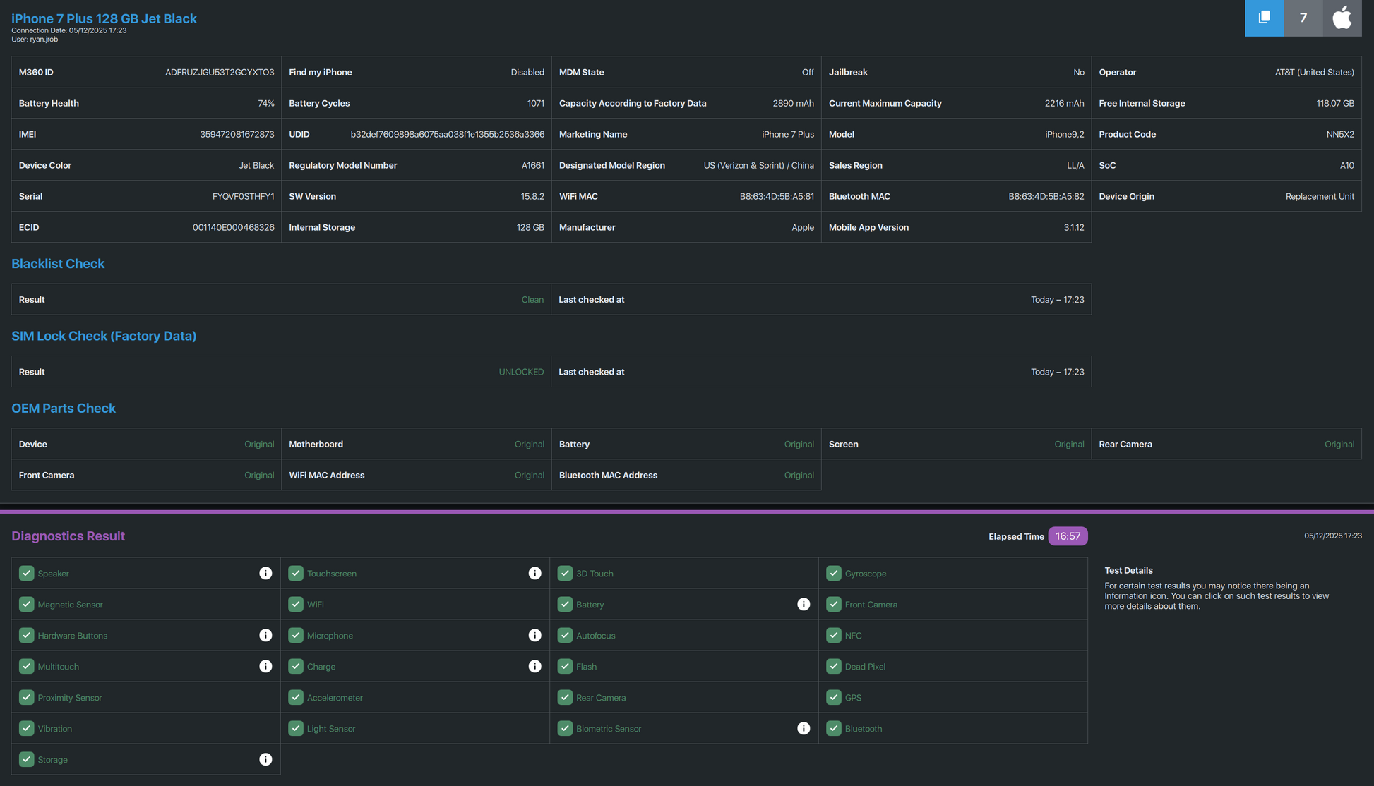 - Phone is tested, working, and has been factory reset. Please take a look at the attached photo with the testing report details, as well as the report details at the bottom of this description.