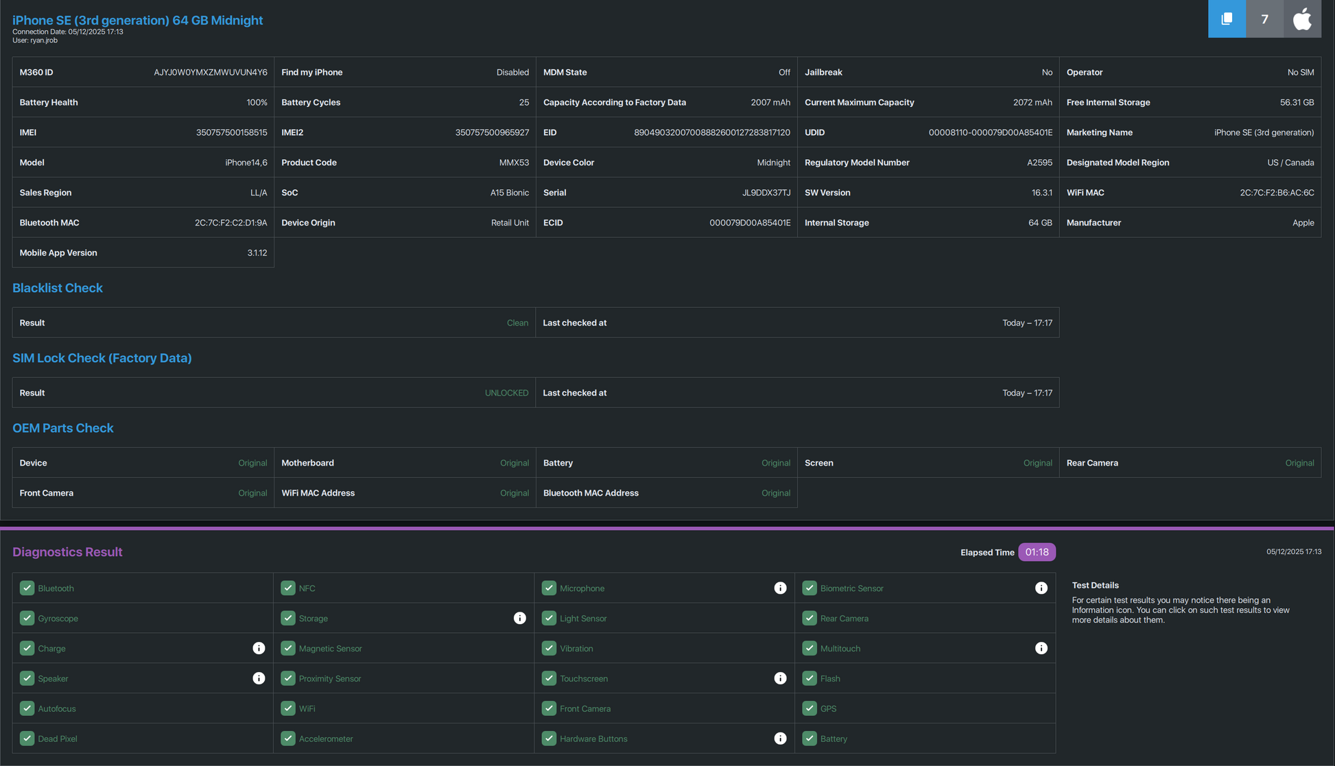 - Phone is tested, working, and has been factory reset. Please take a look at the attached photo with the testing report details, as well as the report details at the bottom of this description.