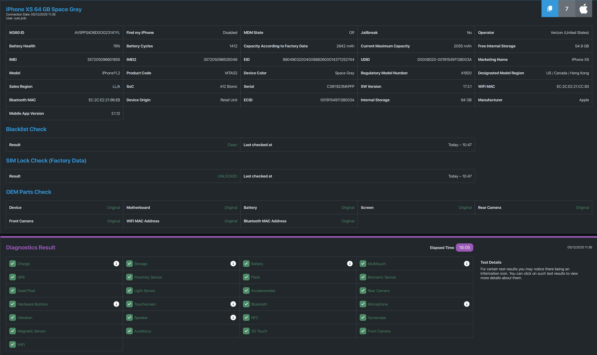 - Phone is tested, working, and has been factory reset. Please take a look at the attached photo with the testing report details, as well as the report details at the bottom of this description.