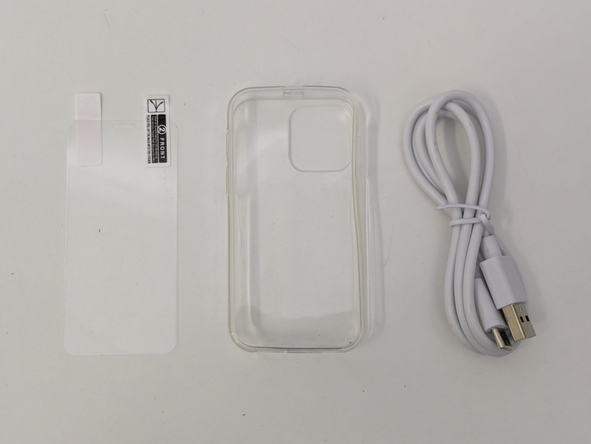 Includes phone, USB-C charging cable, transparent case, screen protector, and SIM tray removal tool, all in original manufacturer's box.