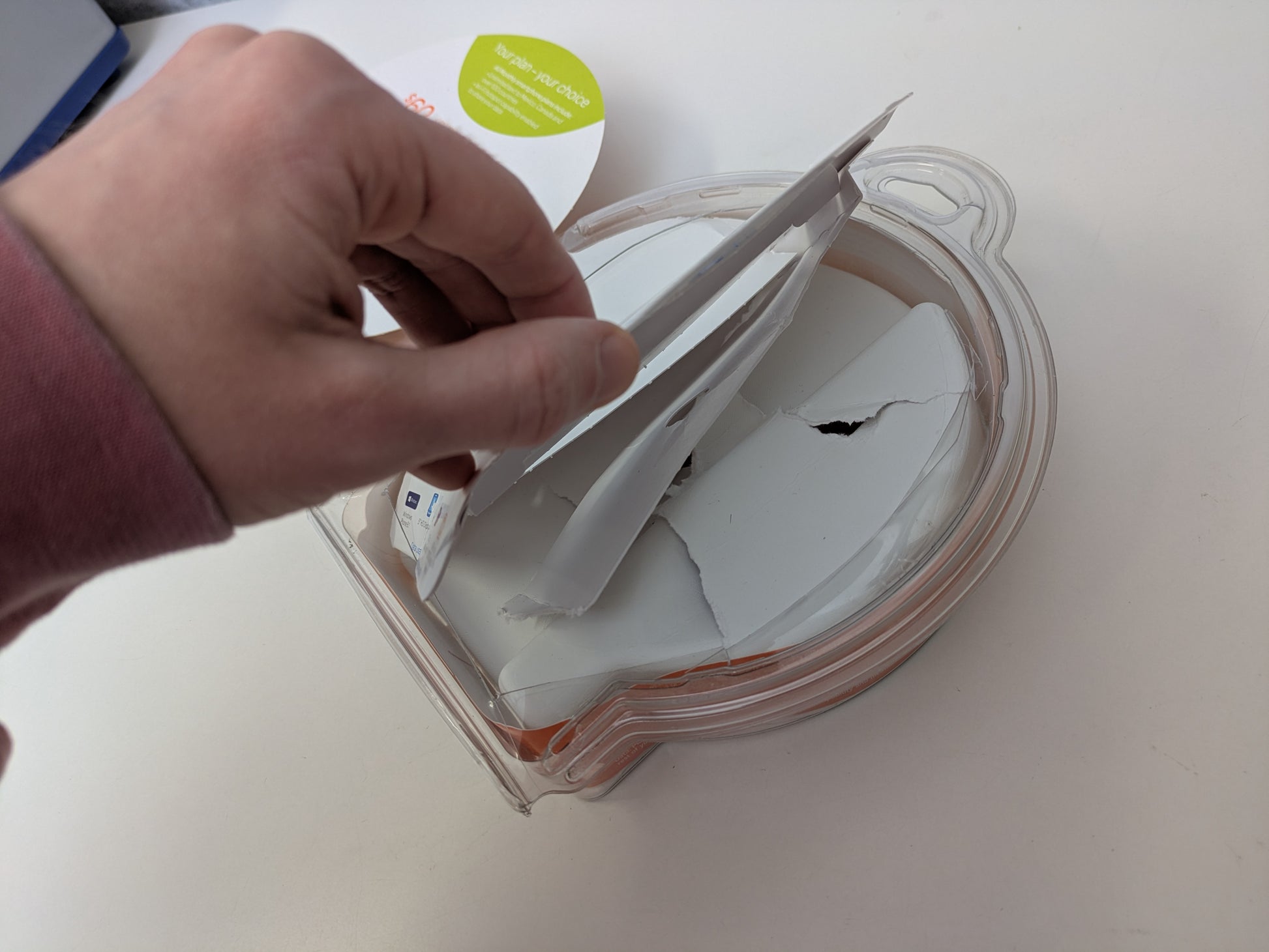 - Box is in acceptable condition, with plastic cut out and cardboard crimped and/or ripped in order to remove phone from packaging.