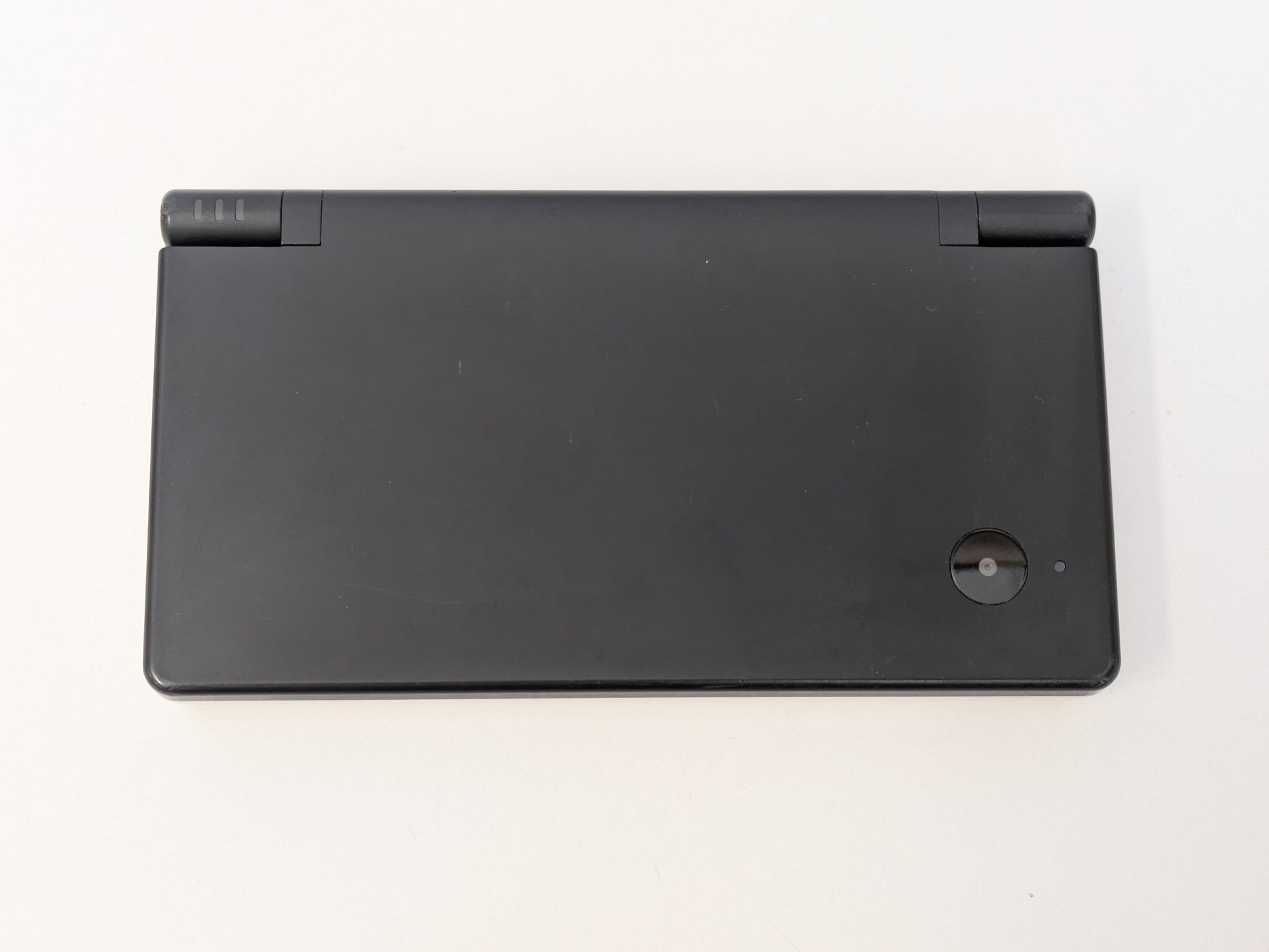 - Light scratches on outer body. Small knick next to LED indicators. Clear plastic coating on rear label beginning to peel. Bottom screen free of scratches. Small scratch toward top of upper screen. Please take a look at the photos for further cosmetic details.