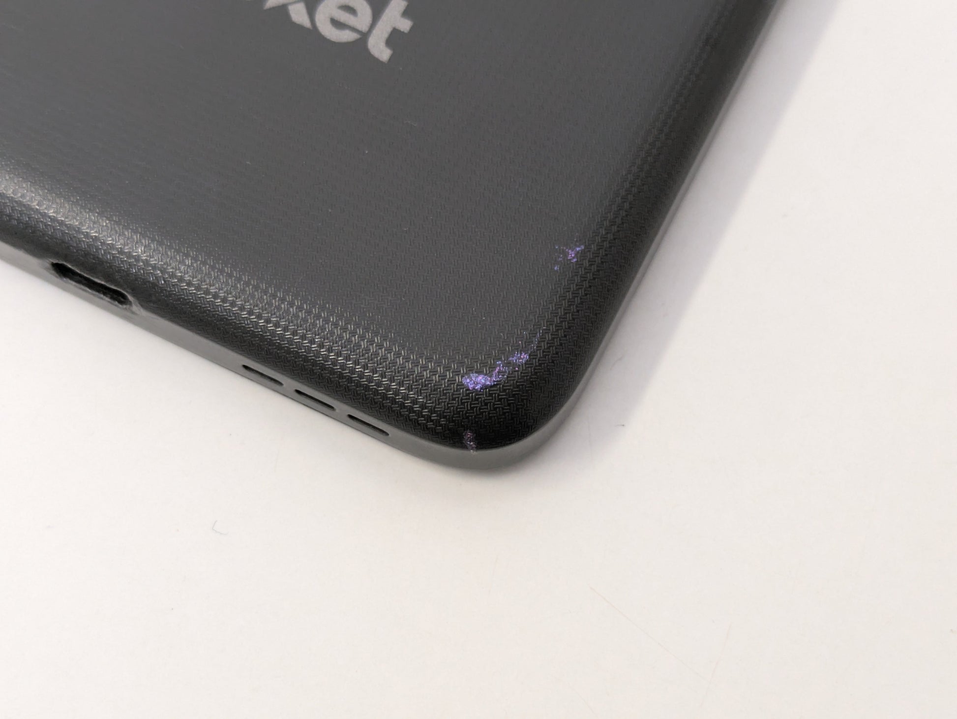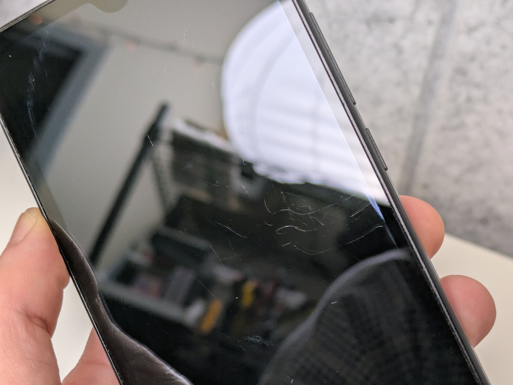 - Light scratches on screen and battery door. Purple paint(?) on lower right hand corner of battery door. Scratching around charging port. Please take a look at the photos for further cosmetic details.
